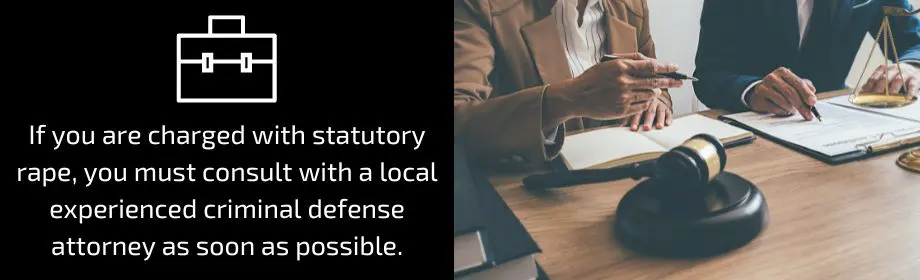 If you are charged with statutory rape, you must consult with a local experienced criminal defense attorney as soon as possible.